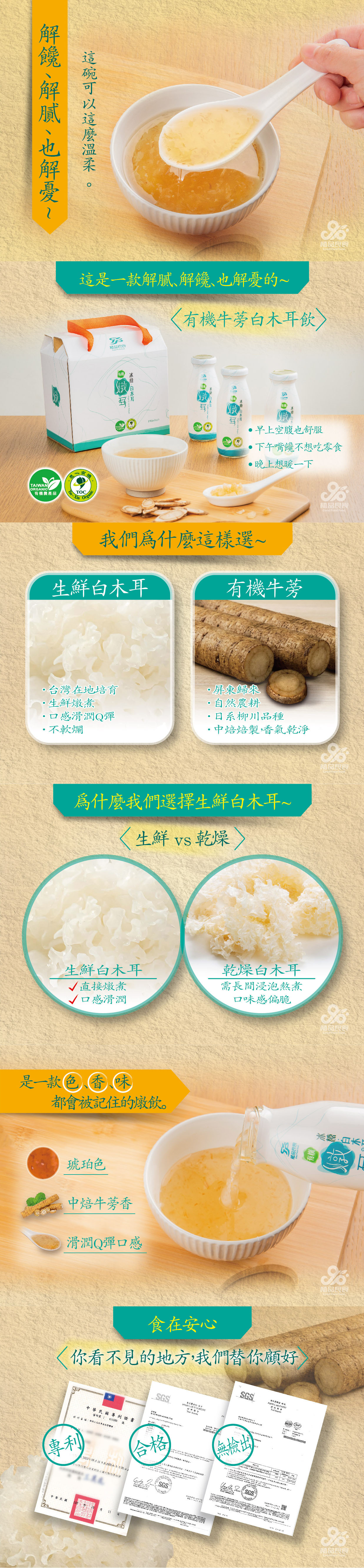 成分:水、有機白木耳(台灣)、有機紅晶冰糖(巴西)